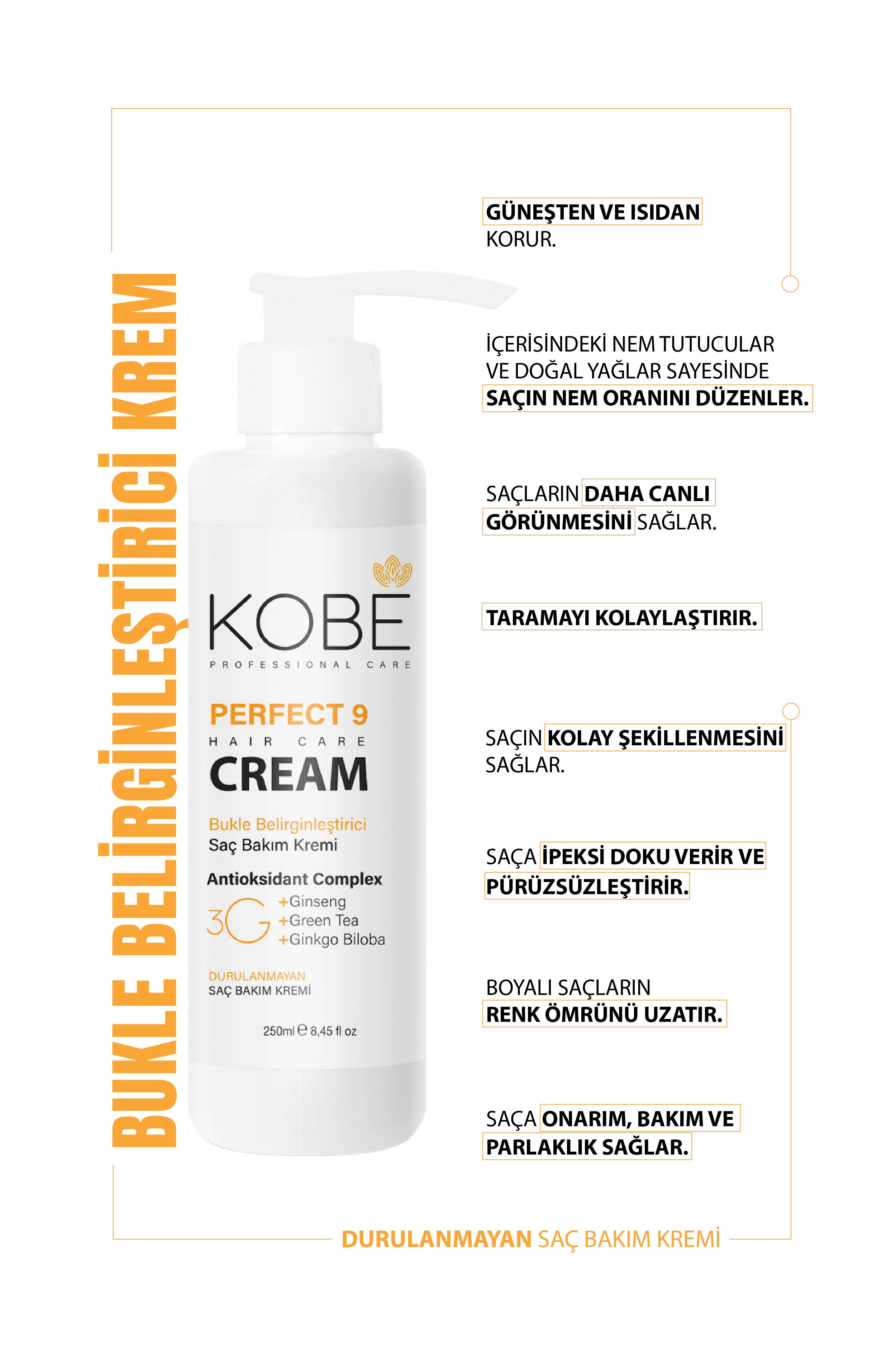 parlaklık, yumuşaklık, kolay tarama, bukle belirginleştirme, güneş koruma,